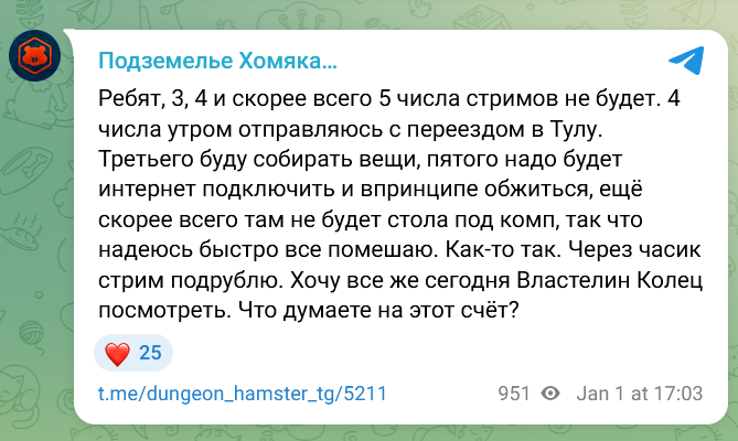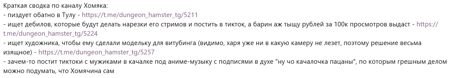 >>25988790 Он каким-то макаром раскрутил свой канал в ТГ про какую-то игру ZZZ. 2,4к подписчиков, посты просматривает около 900 человек. Кто это читает и смотрит - не представляю. Я был на канале еще в самом начале, так он срал постами по несколько десятков в день. Посты чисто по этой дрочильне. Я не выдержал и сбежал. Все равно контента не было.