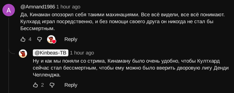 >>25980347 Выпал сейчас в реках, глянул. Кинбис упорно не хочет трогать кинамана, накинулся на моиса. И почему-то не задается вопросом, кто организовал такой дерьмовый челлендж.