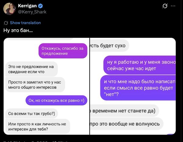 >>25995207 Да даже если и не хочешь. В чём проблема не создавать проблему на ровном месте. Вежливо отвечаешь, что нет желания и в игнор. Всё. Но свинье ж надо в ИКСЕ повыёбываться, как её все хотят.