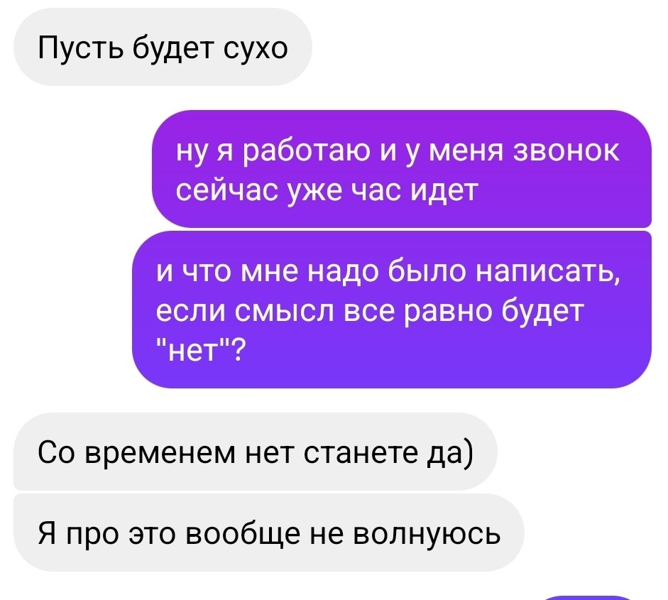 Хоть бы имел яйца и написал бы че нить типа 'да пуся это свидание, пошли потусим' может быть толстая яна и заинтересовалась уверенным мужиком. А это стыдливое 'эм пук среньк это не свидание ну мням не хотите на кофе' а затем отчаянная попытка в уверенный тон 'со временем нет станет дааа)))' выдает крайне зашоренного додстера, хва хва.