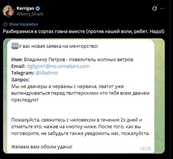 Бля, я не понял. НАша подруга насмотрелась менторов и решила стать ментором, который учит менторов и наставников? Нормально её на инфоцыганские курсы развели, всё как мы и думали, хвахва!