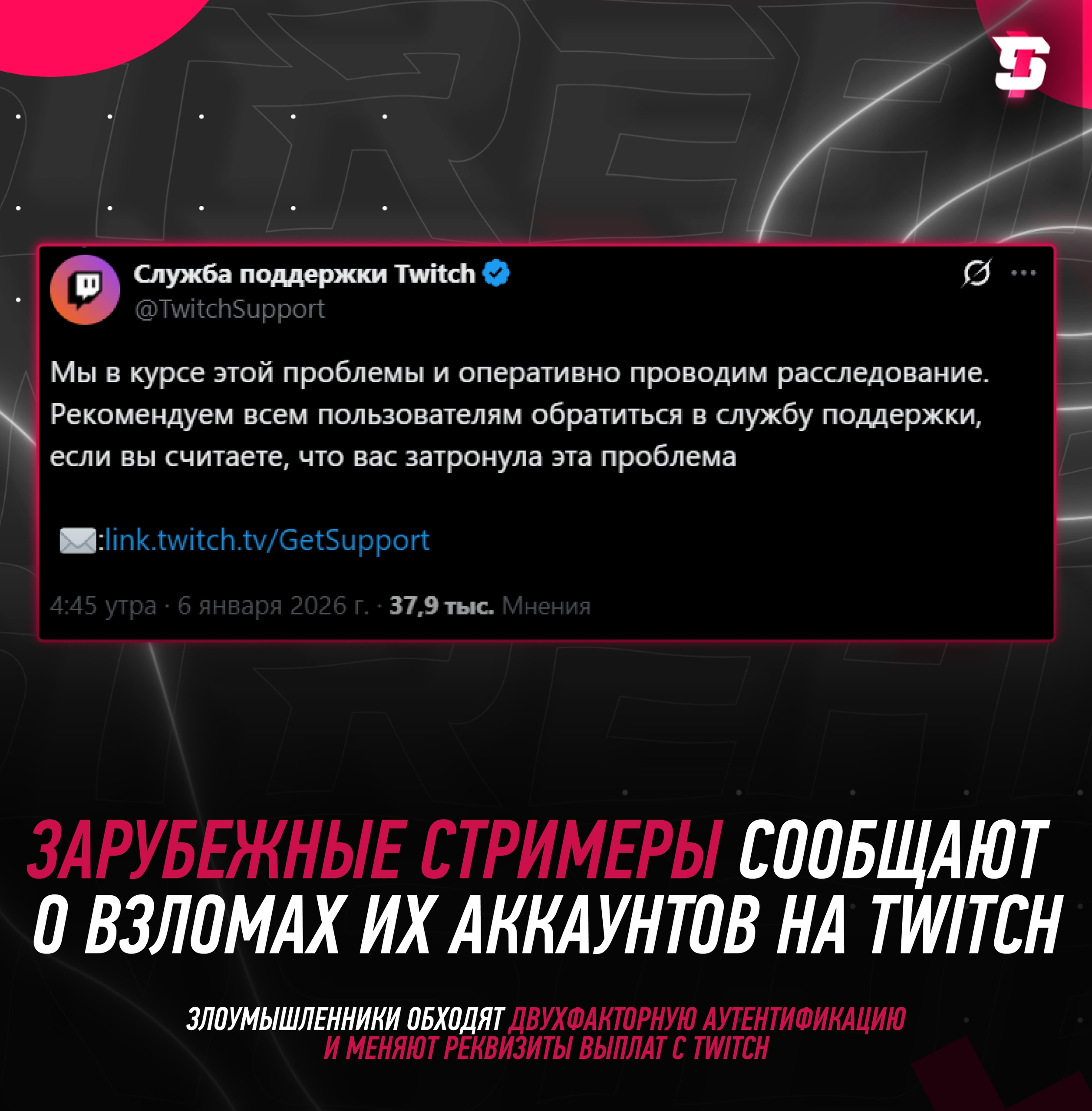 «Мы в курсе ситуации и ведём расследование. Рекомендуем всем пользователям связаться с поддержкой, если вы заметили подозрительную активность» — Twitch.