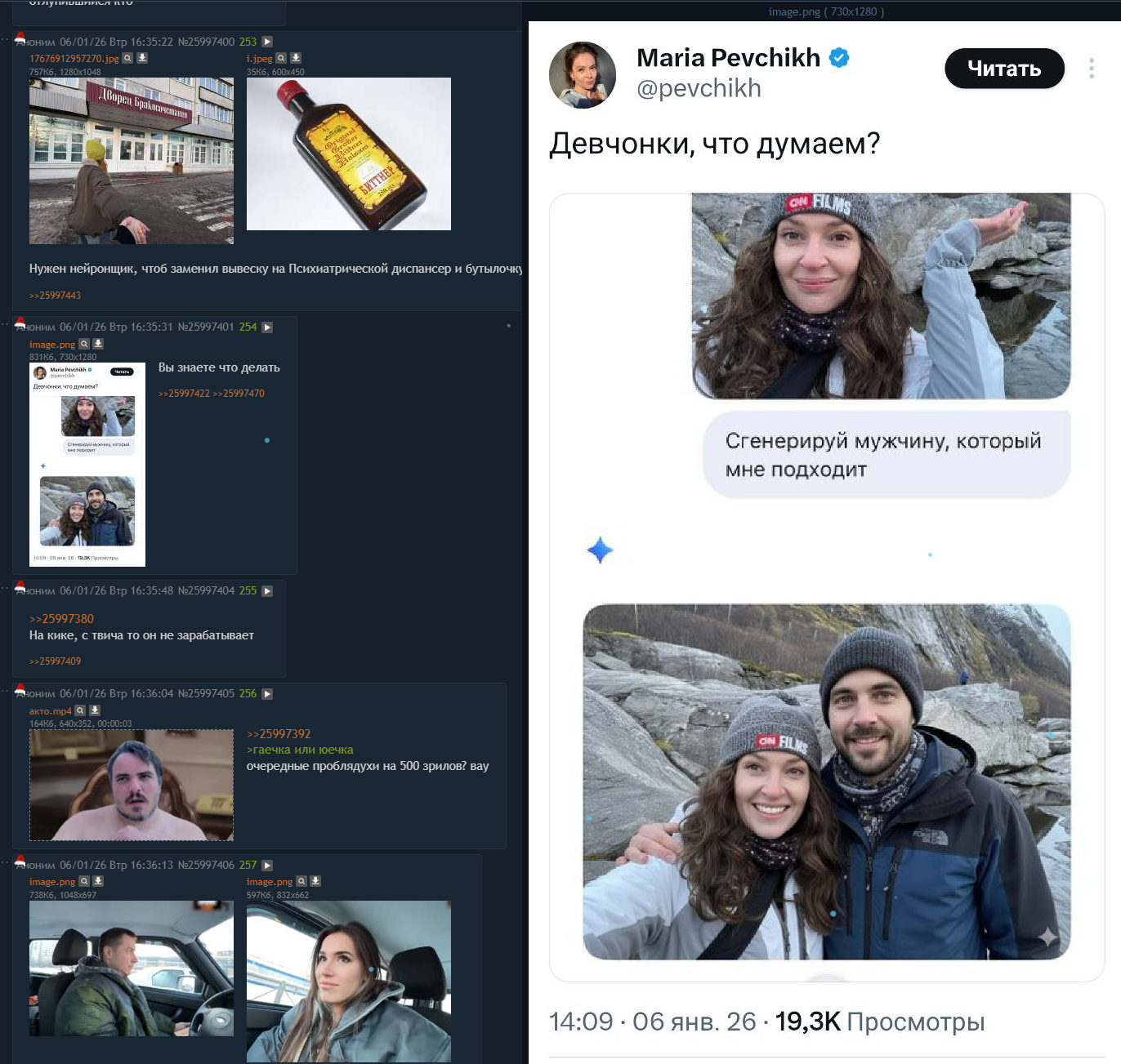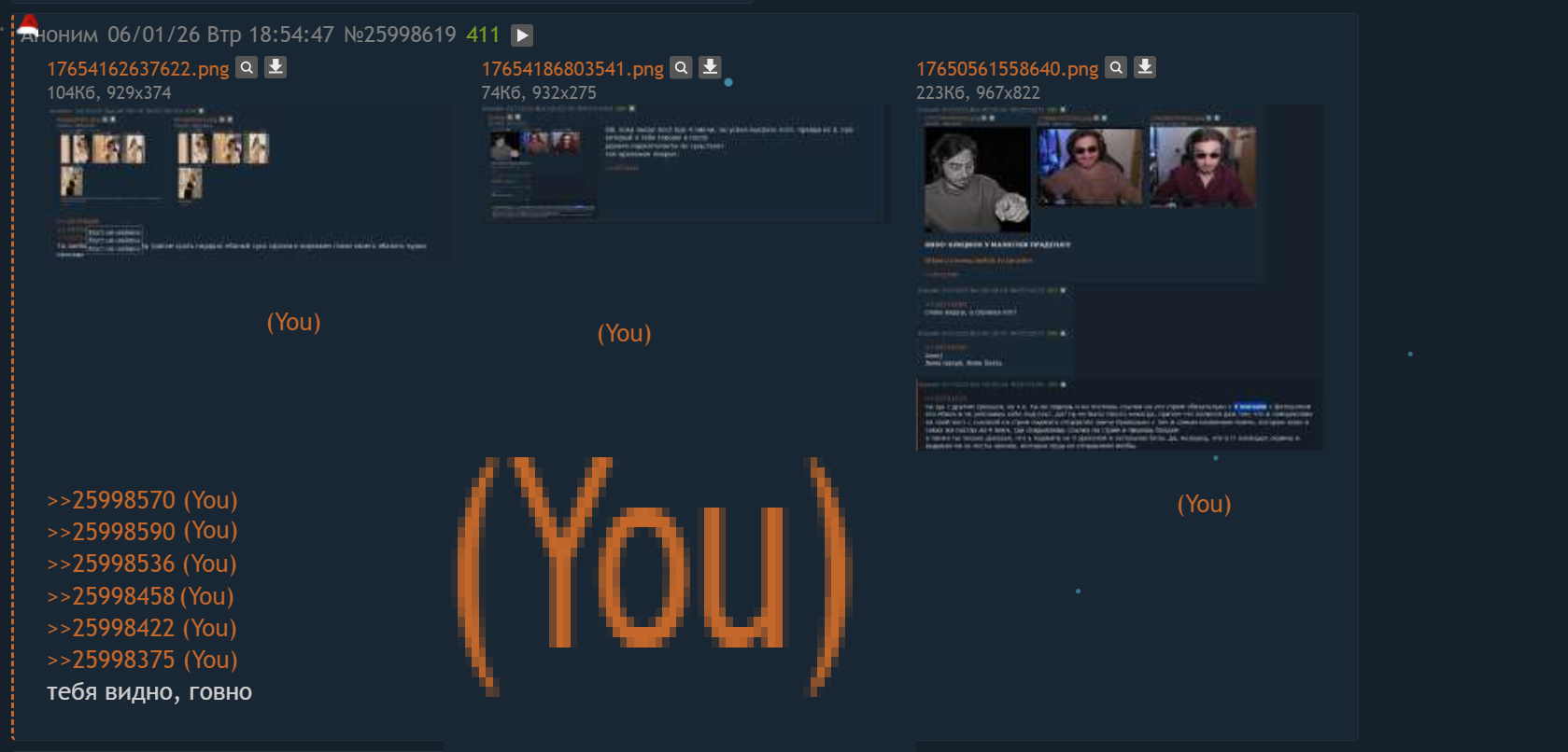 Ну вообще, Илюху можно понять. У него все подсосы ебутся, кто-то даже в жопу с Гитманом, а он сидит блять один в кулачок дрочит в свои почти сорок, вот и ловит депрессуху. Еще и в треде баб постят постоянно и счастливых подсосов на новый год типа дениса или ласки