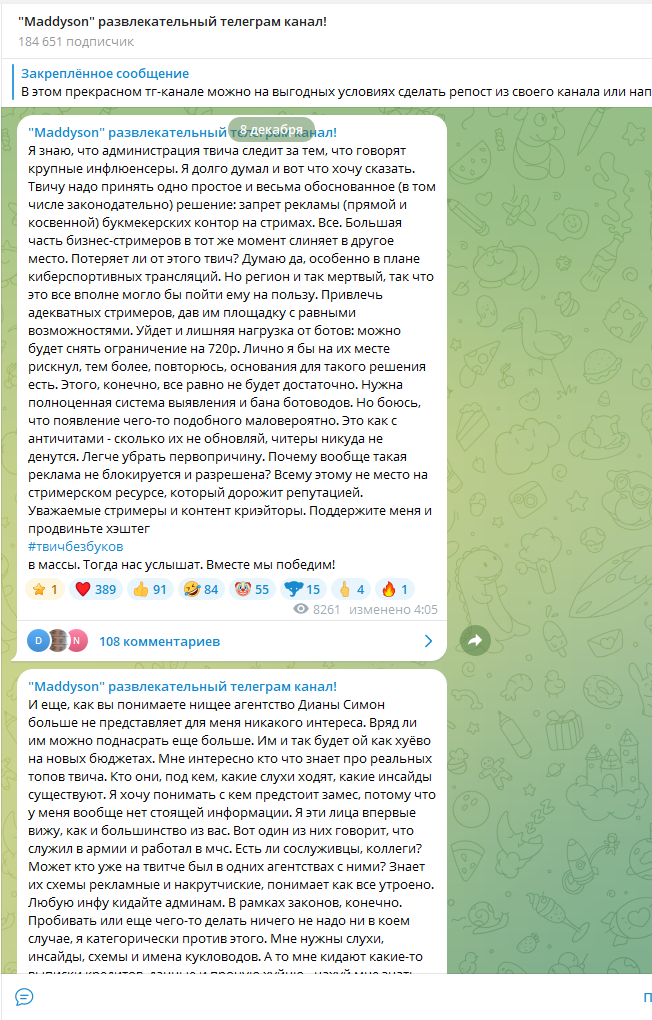 Сейчас зашёл на стрим лысого фейсера, он говорит что Братишкин ровный пацан, он, цитирую, очень-очень-очень долго растил свою аудиторию. Смешно. А как выглядит аудитория Братишкина? Я знаю как выглядит аудитория Мэддисона. А вот это вот всё.. Ну вот выросла аудитория Крутишкина, и как он их взрастил, кем?