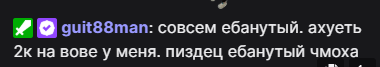как мне нравится что мэл сидит всех в накрутке обвиняет, при этом как к нему не зайду всегда в унылую срань по типу проекта зомбоида или персоны играет, онлайн ниже 3к не падает, чат либо мертвый либо в смайлах/пастах как у накрутчиков. Прикольно конечно мелкие стримеры придумали сместить внимание на крупных рыб по типу сасавота и эвелона, чтобы самим докручивать 20-30% под шумок