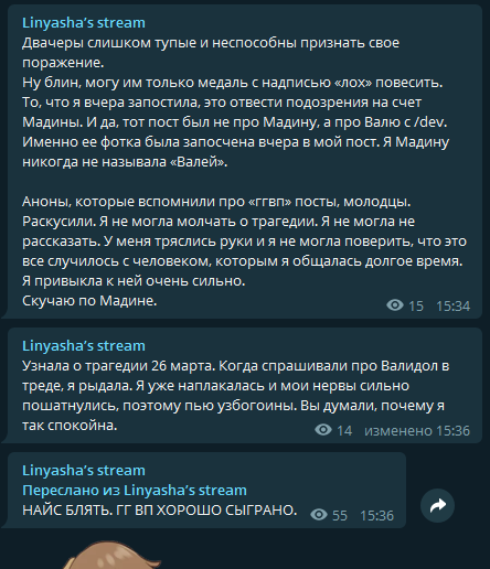 >>26095971 Хороший человек говоришь? Давай перечислим ее зашквары: лично заплатила за деанон санька, большую сумму примерно из 50к сама внесла. Пролезла в модеры, чтобы отомстить протыкласнице германике. Гнилой склочный характер, не только забрала деньги алкаша, это ладно, габи тоже так сделала, но и насмехалась над ним про кошелек на дороге. Что еще? Добавляйте.