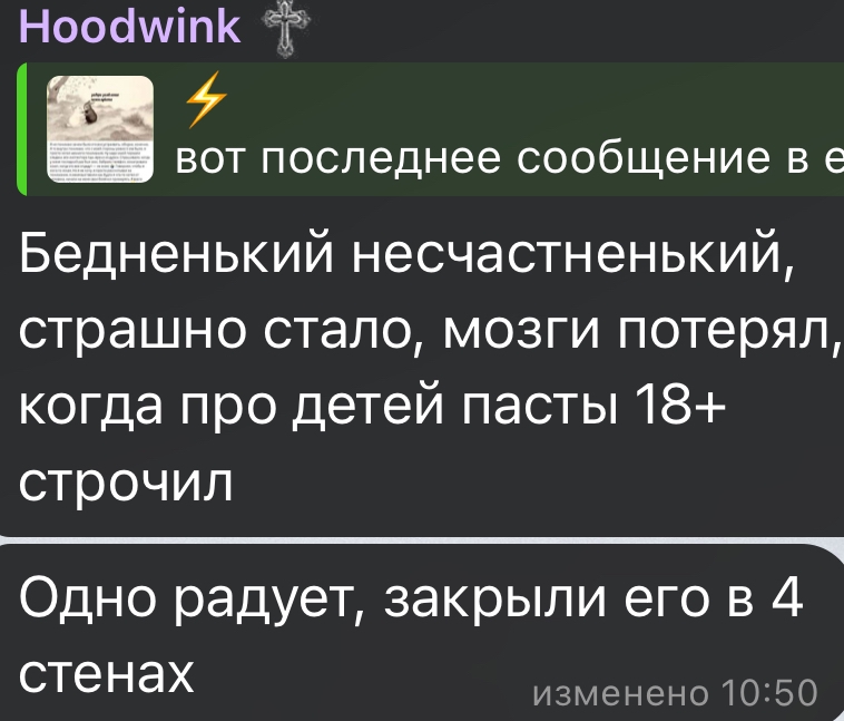>>26098885 @loginovblog Но там давно пусто из-за авто-удаления, гоблин перестал постить с тех пор как его навестили и посадили на бутылку. Теперь он только в личках бычит на детишек, которые его сдали ментам.