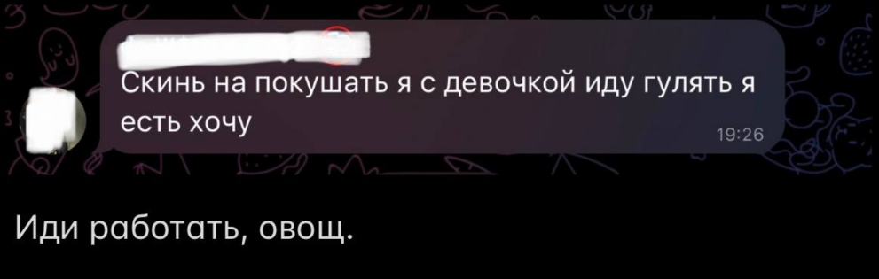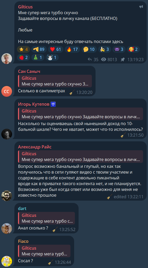 Вообще странная ситуация получается, когда мы говорим с пруфами что дениска страшный без фильтров, пидор на занюхе отвечает что красота в глазах смотрящего при этом постит какого то чулочника высмеивая его внешность, сам же себе противоречит и еще как крыса тащит подписчика его любимой малютки из тг сюда нам на потеху