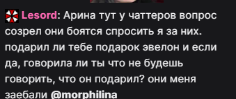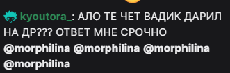 >>26141219 ага а типа не было раньше такого, что он к обеим подкатывал? сидел на стримах морфилины и наташке написывал в чат и оплачивал трек у палагина
