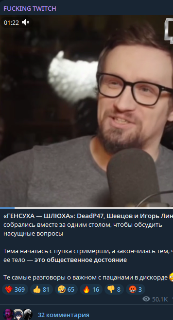 >>26144759 Да похуй всем на эти "разоблачения" там основная часть просмотров это долбаебы, которые даже на твиче не сидят и которые на следующий день забыли про её существование. А твич аудитория хейтила её и до них, как и большинство популярных стримерш. Там такая же хуйня как и с Сасавотом, хейтят максимально далекие от твича челы на которых срать максимально