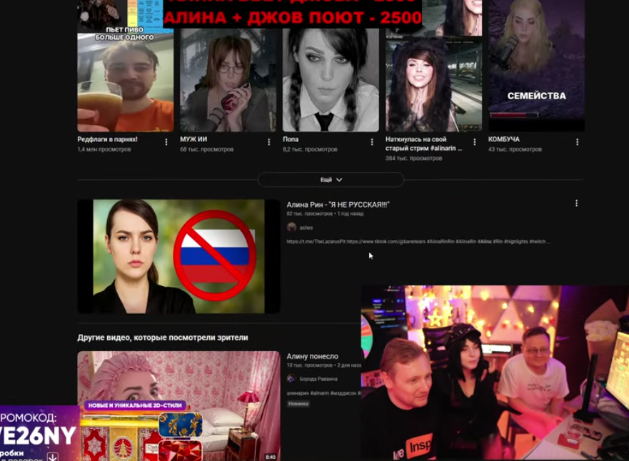 Гайс,у меня скверное чувство что скоро Гитман выйдет из шкафа.Возможно, до конца весны. Контент у Алины идет понарастающей ,скоро все комплексы спадут. Я не психоьог и не профайлер,но комплексы она свои реально борет. Её главный комплекс-держать ёбыря в шкафу. Я думаю в этом году мы увидим адекватные стримы гита и ринчихи без мозгоебства