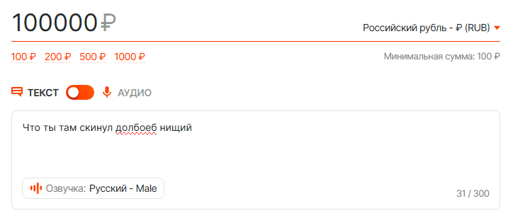 >>26140062 → >донат вообще божеский стоит А на самом стриме: "это не буду, только за 10к". Алиночка аж в ахуй выпадала на фоне там. Потом вообще 300к поставил цель - бить себя током через ошейник два дня по 12 часов за маты.