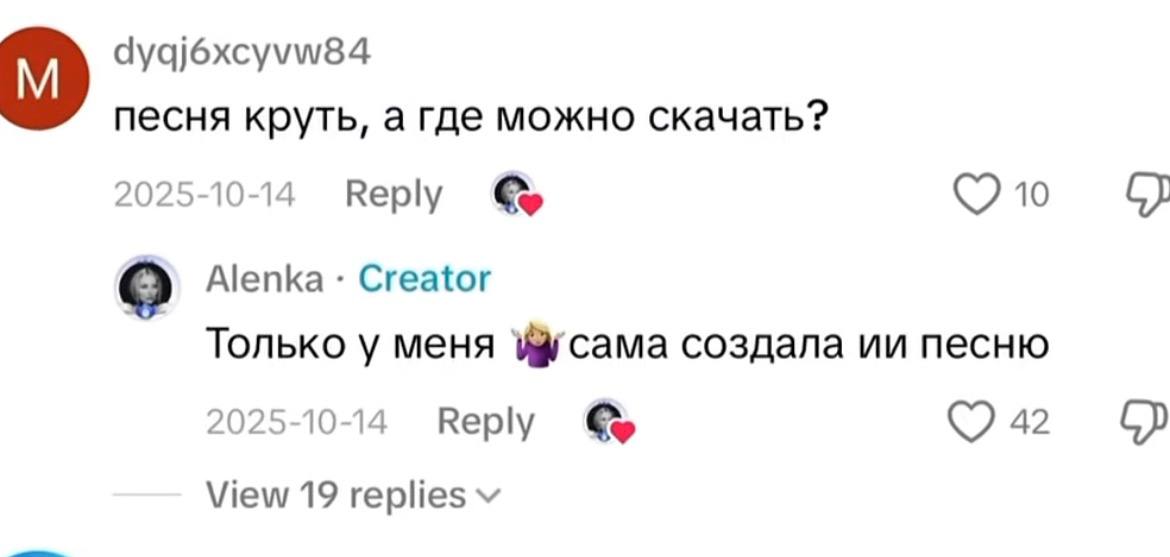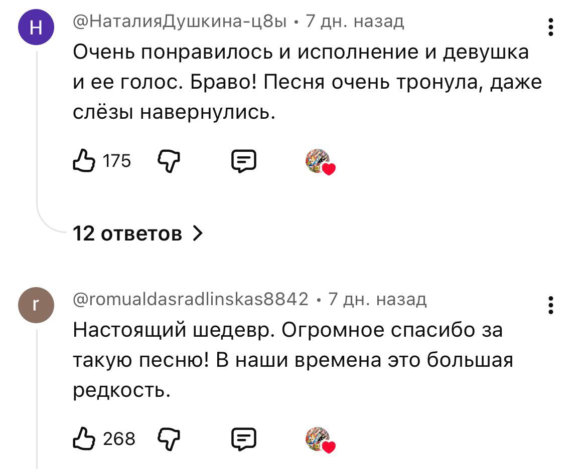 Трек уже около трёх месяцев держится в топ-чарте Яндекс Музыки и собирает восторженные комментарии слушателей. После выхода в эфир Алёна Тарасенко заявила, что полностью написала песню сама. При этом, когда трек только появился в соцсетях, она прямо говорила, что использовала ИИ для его создания.