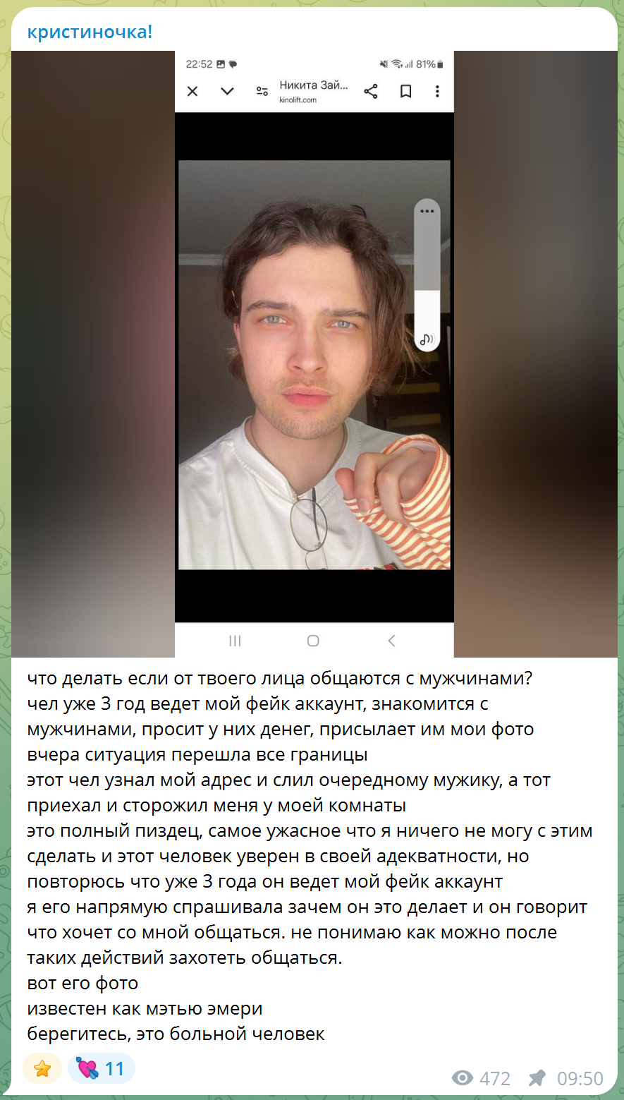 >>26119608 Вся эта хуйня типа боюсь зрилов его, они двачеры и тд это бред. Они боятся именно арчидоса потому что он долбаеб неадекватный, просто посмотрите как он на последнем стриме марину хуесосил, там чат его даже успокаивать пытался. Естественно ни одна нормальная баба не захочет с таким челом связываться.