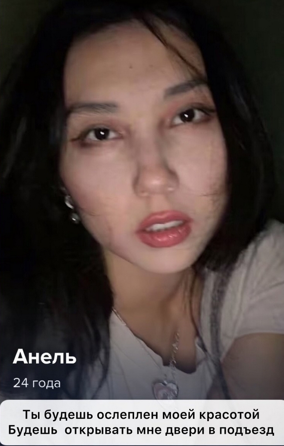 Конфликт начался с того, что Анель попыталась зайти в подъезд за Аружан, но та услышав, что прямо за ее спиной кто-то очень очень быстро топает, оглянулась назад, и увидела нашу Анель, передвигающуюся с военной выправкой. Но Анель взбугуртнула и начала настаивать на том, чтобы Аружан вошла первой, попутно распуская руки. Бугурт по всей видимости был вызван тем, что она торчала там хуй знает сколько, и все ради того, чтобы ее пропустили вперед. Аружан решила не идти в подъезд, а начать снимать на телефон. На видео попали первые секунды её бугурта, а когда Анеля заметила, что ее снимают, она сразу же переключилась на милую, кокетничающую девочку, хотя в конце все же неудержалась и намекнула о выкалывании глаз операторше. Все это происходило в три часа ночи. Оказывается, что это не первое ее злодеяние. До этого она уже успела проколоть кому-то шины, получить срок, и создать еще хз сколько конфликтов на ровном месте. Что интересно, все ее жертвы женского пола. Так же есть видеозапись где она несколько раз подряд преследует входящих в подъезд рандомов. Закончилось все судом, где Анеле выписали штраф в что-то около 80к тенге, и положили на пару дней в дурку. По инфе из threads(аналог твитора), она была странненькой еще со школы, а так же у нее есть диагноз(страдает предположительно маниакально-депрессивным расстройством по заверению разведчик-куна). Благодаря анону-разведчику удалось выяснить, что Анель пыталась со всеми завести разговор https://arhivach.vc/thread/1300124/ , он частенько видел ее в магазине, она несколько раз спрашивала сколько времени и т.п.