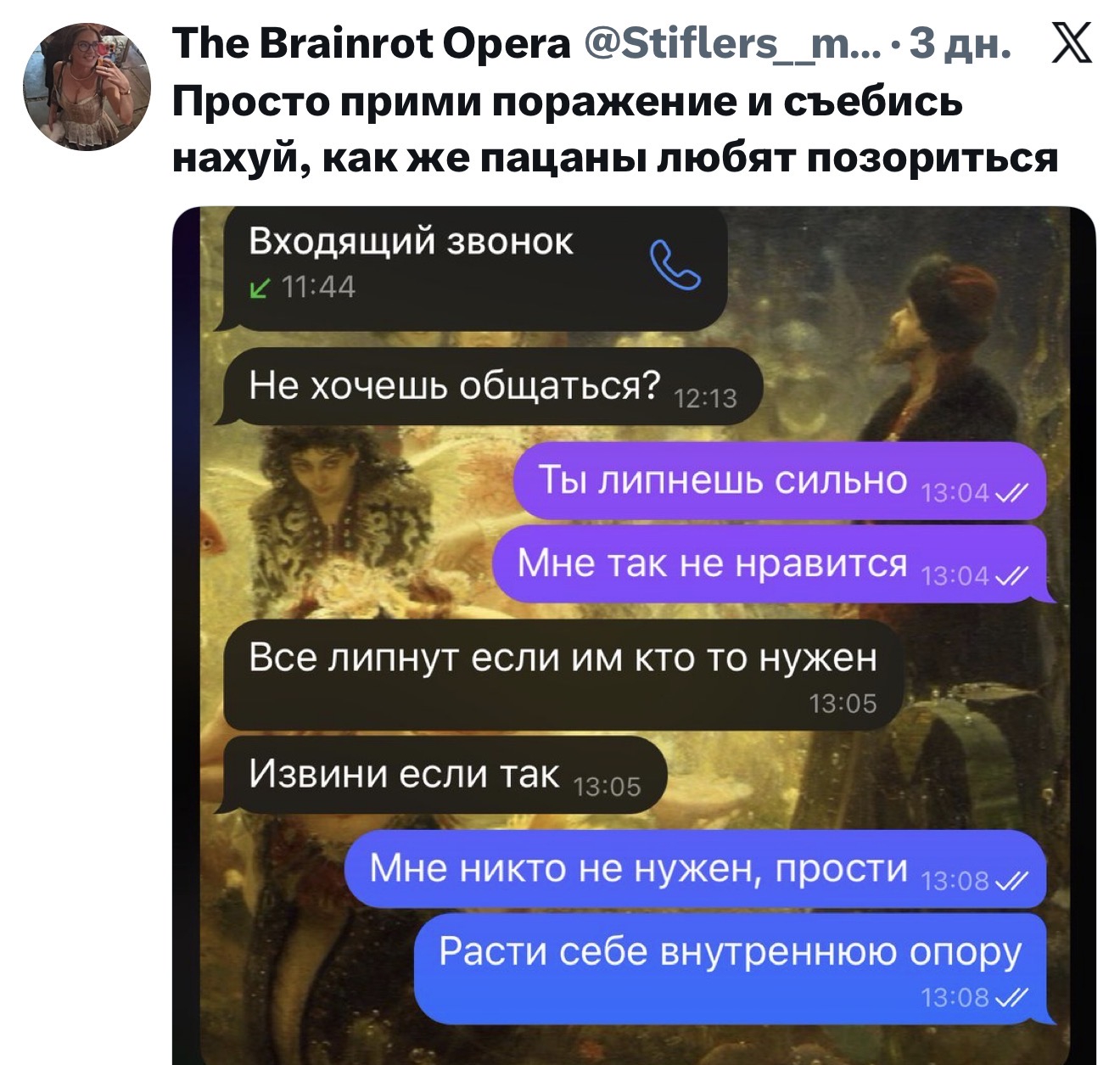 @monkey чудовище погубившее мир лучший альбом славы кпсс? не, для меня топ у кпсс - "трудный кпсс" или "111", там ещё сырее и злобнее звучит, чудовище уже попсовее, с этими битами от локи и фитами, которые все на уши поставили. чудовище норм, но переоценено из-за хайпа, реально база - ранние микстейпы типа "мрак" или "дерьмо", где он чисто стрит без прикрас. если ньюфаг - послушай по порядку, не с хайпа хватай.