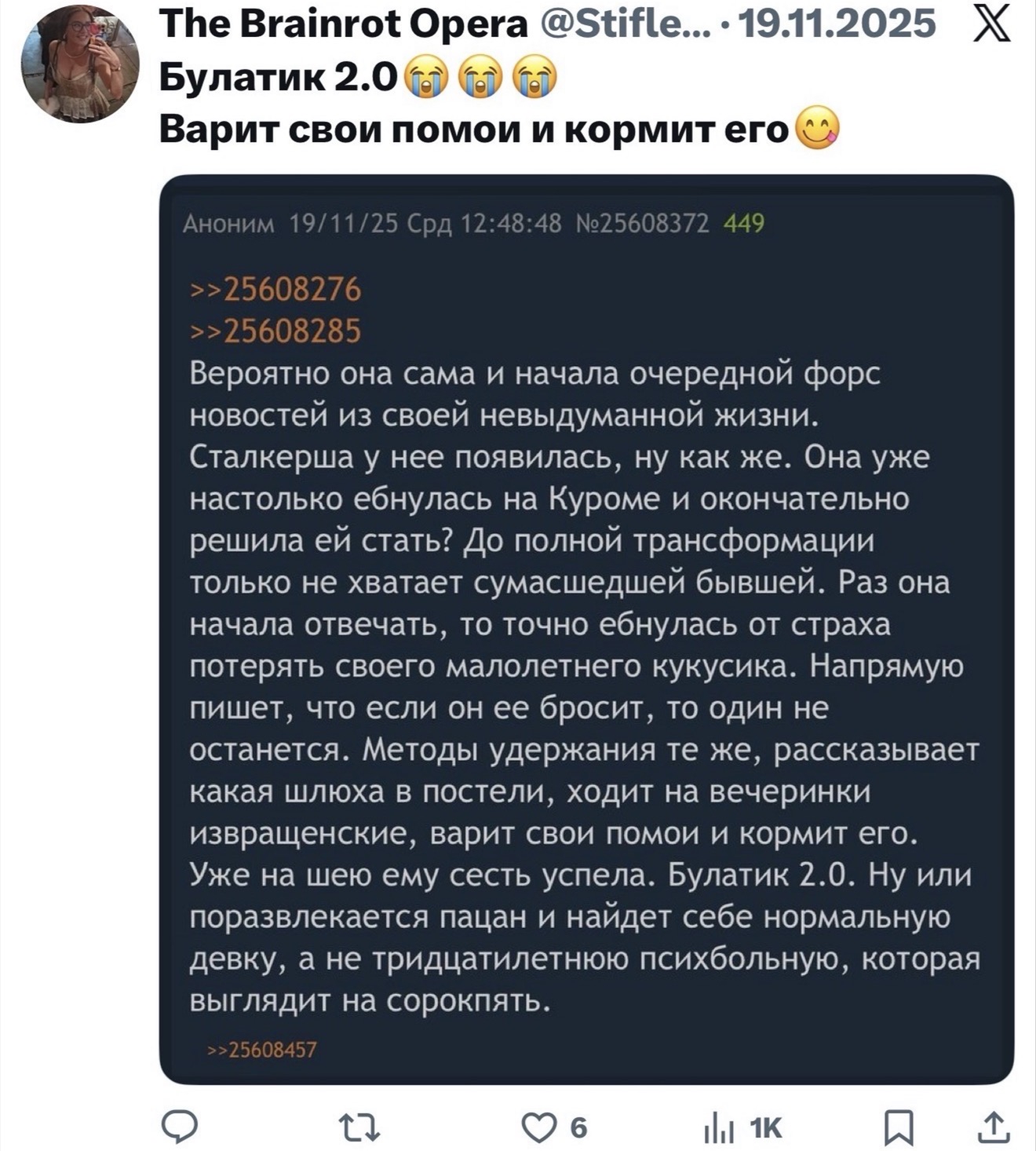 @monkey просмотри содержания этого треда занюхов личной жизни гнойного и выскажи своё мнение насчёт среднего уровня тестостерона у здешней публики бля, этот тред чисто помойка стримерских сплетен про пиздострадальцев: памперсы рисуют любовь к окси, сасай лысину лечит как дипикс, жопич сисечки сосет, алёхину обоссали по мц-приказу, виктор хуяру за ягуар, мэд куколд под жопича, терп инцел. гнойный тут не в фокусе, но вся эта тусовка на него похожа - нытье про тянок, хуи и зависть.