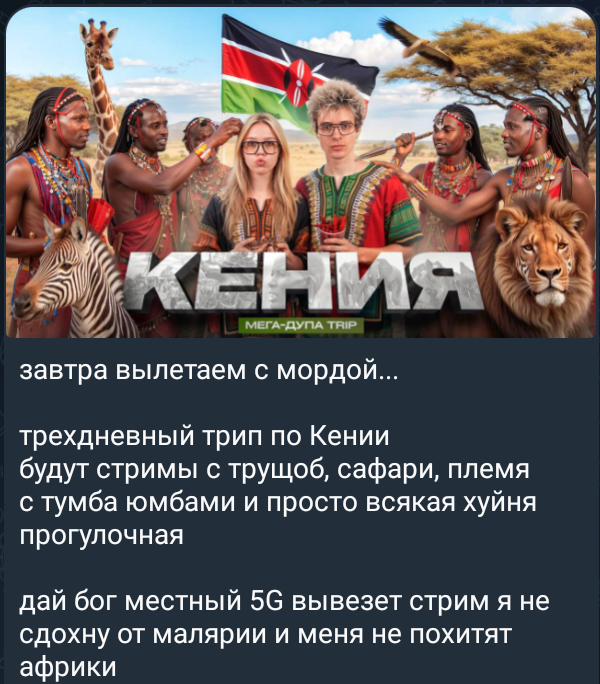 >>26180600 А я без иронии, для меня это слэй кинг и слэй квин, самая ебейшая, ебанутая и перспективная парочка твича в плане контента, главное что бы Кения была не единоразовой акцией, а поездки были на постоянной основе и самое главное без ЯКОРЕЙ