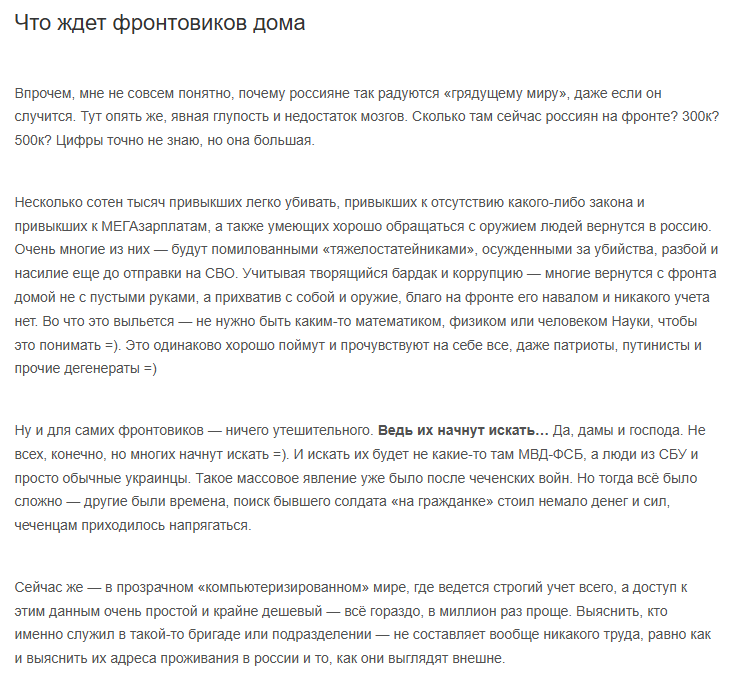 Посмотрел ролик Униан - написал статью в блоге про то как российские солдаты совершают военные преступления на сво. А затем и по возвращению. Но ничего! Украинцы их найдут всех и убьют!