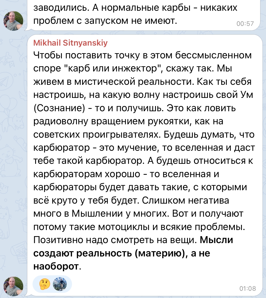 А как не понять, если он сначала просит помощи как новичок, а потом начинает спорить и настаивать на том, что водители мотоциклов не правы, а он прав, потому что 20 лет назад ездил на скутере и учился на автомеханика.