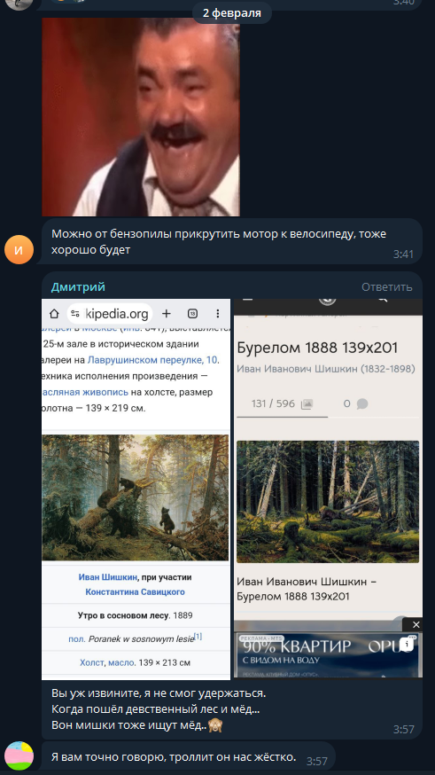 >>26055446 Это да, про походы по шалманам и будни в Питере/Осташково намного интереснее читать. Там обязательно приключится какой-нибудь "несмываемый позор" с которого мы все дружно кекнем. Одна история с буряткой на ресепшене отеля у которой он уже мысленно отлизал, чего стоит. Или дроч ночью в палатке среди медвежьего гавна на острове. Миха сам не понимает что превозмогание в обычной жизни - вот его путь, тут и донаты зарыты. А он мается херней, хотя мог и кунтента сгенерить и озолотиться. Ну может одумается, кто знает.