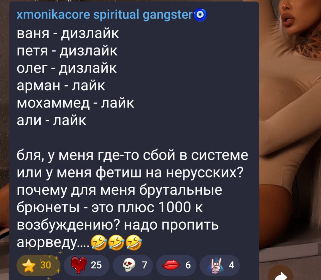Женя прост верная как собака. Эсли уж она выбрала себе хозяина, то он может её пиздить палкой, пинать, лишать ужина - она все равно будет вилять хвостом, когда услышит его голос. Истории с обоими полудурками Илюхами тому железное подтверждение. Прошло несколько месяцев и все обидки забыты, лул Поэтому она и бомбит, когда симпы идут к другим стримерихам, в ее системе координат это самый страшный проступок)))