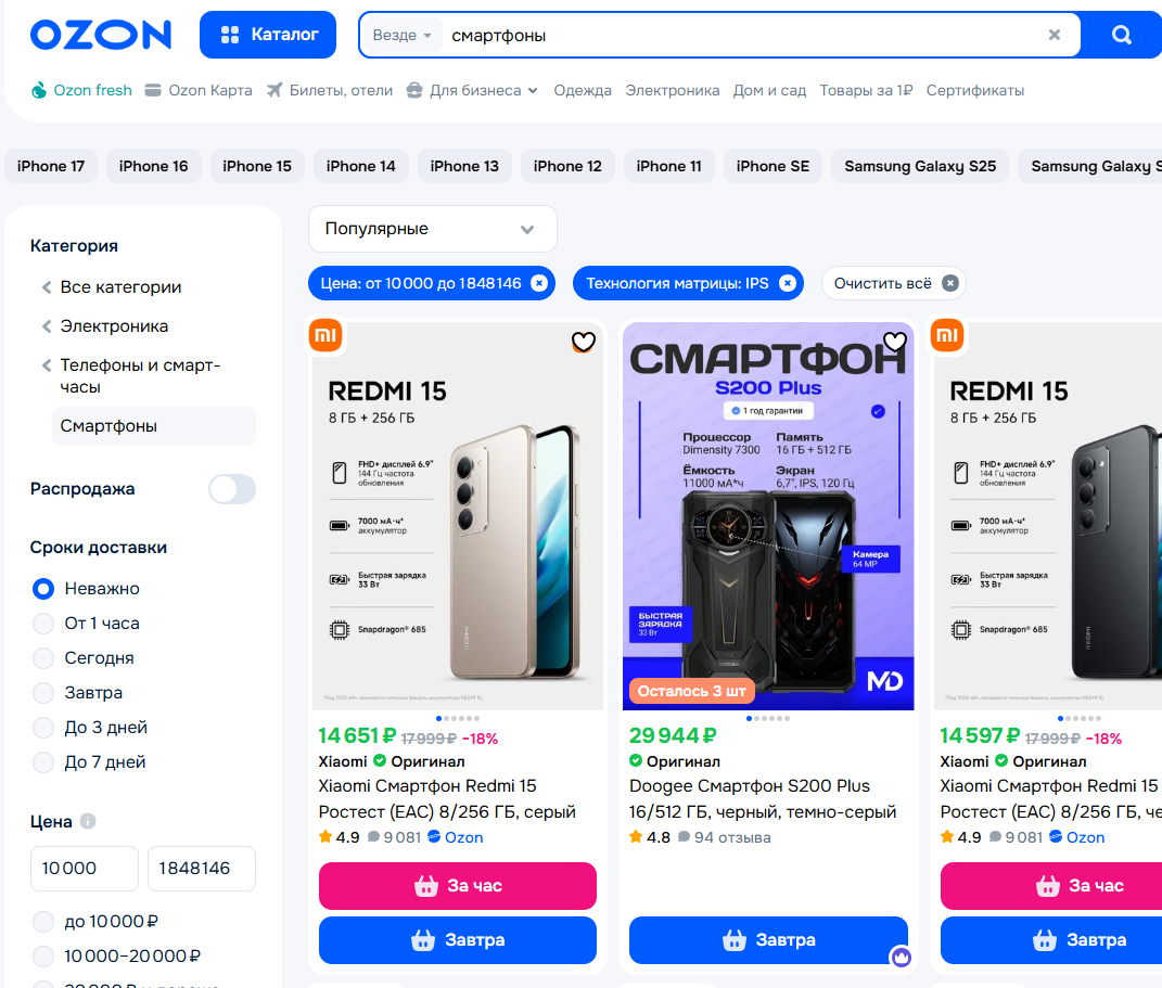 И что мне там на озоне смотреть 100 одинаковых моделей одного смартфона у разных продавцов с разбегом цен в 10-50к? При том что эти смартфоны покупают в основном когда прайс 5-10к