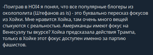 >>26196868 Все правильно, Хойка - это же симуляция реальности, по ней можно строить геополитические прогнозы. Сегодня Криштоф ебется с шаблоном дивизий в Кайзеррейхе, а через 5 лет будет на основе этого опыта вести миллионную армию покорять европу