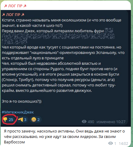 Как же малютка умеет в нетворкинг! Все, с кем он пытается взаимодействовать шлют его нахуй за хамство и попытки указать, что им надо делать: Лидеры ОБ его послали нахуй и забанили за хамство (чего такого? Всего-то про чужую жену пиздел...) Станкевичюс его послал за Хамство (опять пиздеж про чужую личную жизнь, о которой салбтка ничего не знает) Тиллерт он просто заебал Островского он заебал и отлетел в ЧС в группе 17 лет на ютубе Даннилинг и артьмьева, которые ненавидят друг друг умудрились не сговариваясь его нахуй послать за пиздеж про их личную жизнь (а Артемьева еще задеанонить смогла) Даже милостивую госпожу шакал он умудрился доебать и словить недельный бан. А теперь еще джекки нахуй послал. Итого: нашего курьера послали все околополитические групки по интересам, кроме Росова, базового трапа Максин и ретрофора с античным геймером, которые ему деньги предлагают, но он отказывается. Мастерская работа специалиста по маркетингу