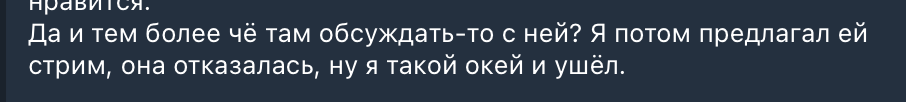 Ну и так к слову... Криштарь, для тебя это будет открытие, но мне в целом не особо интересно обсуждать всяких там медийных личностей(Вне зависимости на их охват аудитории) за пределами данного треда или какого-либо чата если тема к этому не особо располагает. Например за тем же Жмилём я не следил больше месяца и только вчера за немалый промежуток времени решил посидеть на стриме. У меня есть другие вещи, которыми мне интересно заниматься помимо общения с кем-либо и обсуждения кого-либо из мед.персон. Хотя с учётом того, что ты обычно привык избегать неудобных тебе моментов, то никакой адекватной реакции на данную информации и не последует.