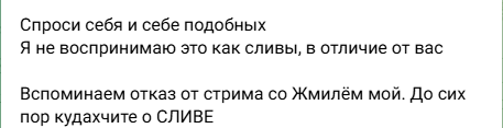 >>26181574 >Ваня Куст решил перестать быть хейтером Жмиля, стал его верным фанатом и решил травить хейтеров Жмиля >Ванечка Легенда пишет: Я не стал фанатом Жмиля) Я даже его стримы не смотрю, никогда ему не донатил, прикинь нахуй, как твой манямирок схлопнулся после моей фразы, этот долбоеб на Криштофе сам на меня в одном из чатов наезжал, чтоб хуесосить Криштофа, для этого не надо быть или становиться фанатом Жмиля) И чтоб ты знал, я лично первый тред для Криштофа создал, захотел, пусть читает) В чем предъявы?