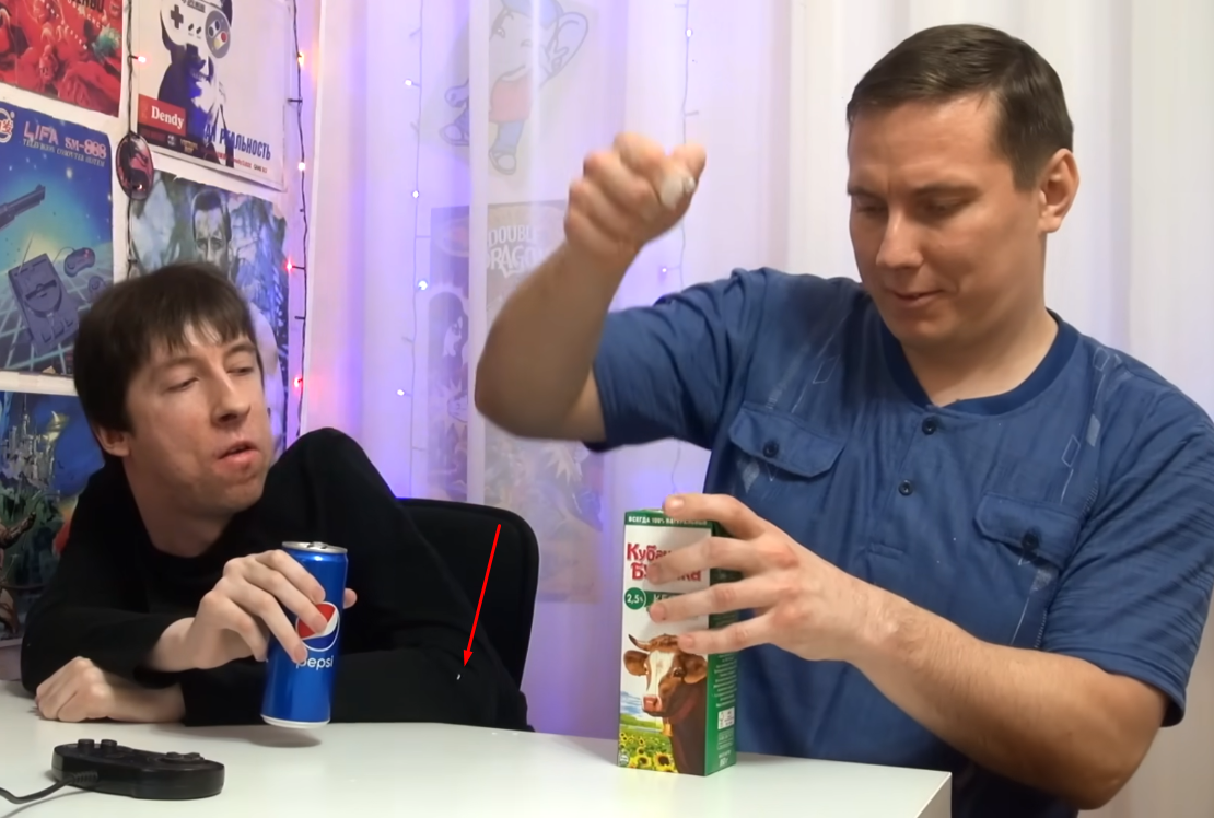 [00:03:20] После этого мальчики внимательно изучают саму наклейку — она представляет собой цветную фотографию с маленьким штампом с номером 20, наклеенную на жёлтую ленту, которая была внутри упаковки жевательной резинки «Терминатор», продававшейся в России в середине 1990-х.