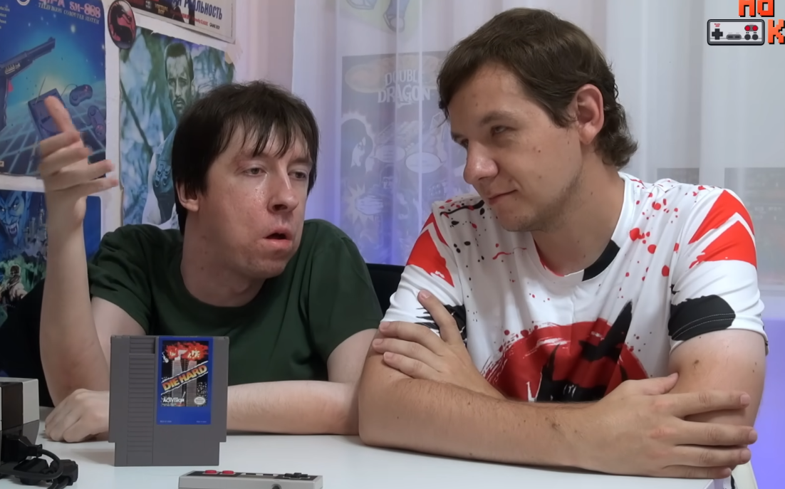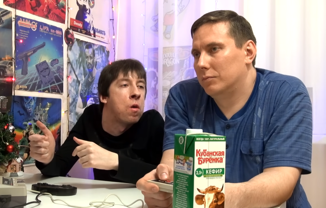 [00:16:37] Если Костя набирает код, это обычно скучно для Андрея, и он ложится спать, а если запускает игру — наблюдает с интересом. Сегодня Костя выбирает кассету с игрой и запускает процесс загрузки игры — на экране телевизора появляется цветное мерцание, сопровождаемое звуком магнитофона.