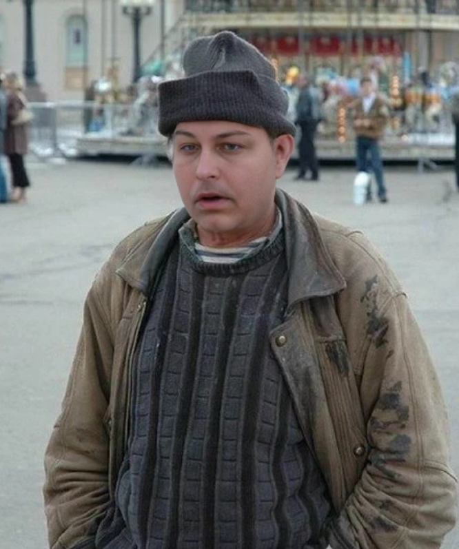 [00:10:32] Все разошлись по домам, не решив тайну окончательно. Ирония в том, что мужчина на наклейке действительно был мужем Линды Хэмилтон (актрисы Сары Конор) — режиссёром и автором «Терминатора» Джеймсом Кэмероном, который случайно попал на промокадры, использованные для серии стикеров. Эта информация была неизвестна мальчикам в 1994 году.