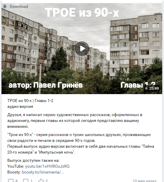 >>26236164 Друзья, я написал серию художественных рассказов, оформленных в аудиокнигу, первые главы из которой сегодня представляю вашему вниманию.