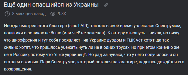 >>26232366 Ну я смотел его в самом начале, когда у него подписчиков, наверное и 15к не было. Когда ему совок в голову не ударил еще, он был для своего времени смотрибелен и обзоры по 10-15 минут на смешной кал. А потом он прочитал, видимо, какую-то советскую листовку, пока срал, преисполнился страной, которую потеряли, и начались скетчи на 3 часа хронометража, где он в бдсм-костюме чекиста бьет себя по жопе