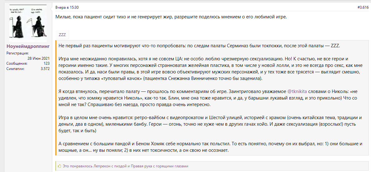 >>26238285 Иля как-то говорил что иногда заходит почитать, никакого негатива он не выражал. Наоборот сказал что весело. Иногда жёстко, но в целом весело.