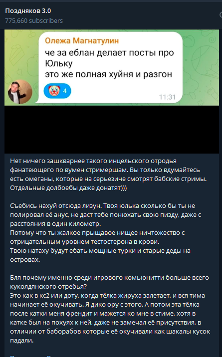 я короче обычно существую на терпилычах и действительно благодарна за все донаты, но я обс открыла и реально разозлилась, потому что чел, который на фильм задонатил, выкупил фильм, потратил 5к и написал мне что посмотрим кино когда мне удобно начал писать что вот почему я в игры играю, которые никому не нужны, и не смотрю его крутой фильм, у меня после оскорблений в донатах и попыток меня задеть примерно 0 желание смотреть кино человека, чувствую что может я неправильно поступаю и это деньги, но мне кажется что никакие донаты не дают права меня в них оскорблять и говнить, пишу тут потому что он наверняка тут есть да и заебывает молчать периодически о таком Всех адекватов люблю, всем здоровья, щас я от ахуя отойду и подрублю, мое кино посмотрим