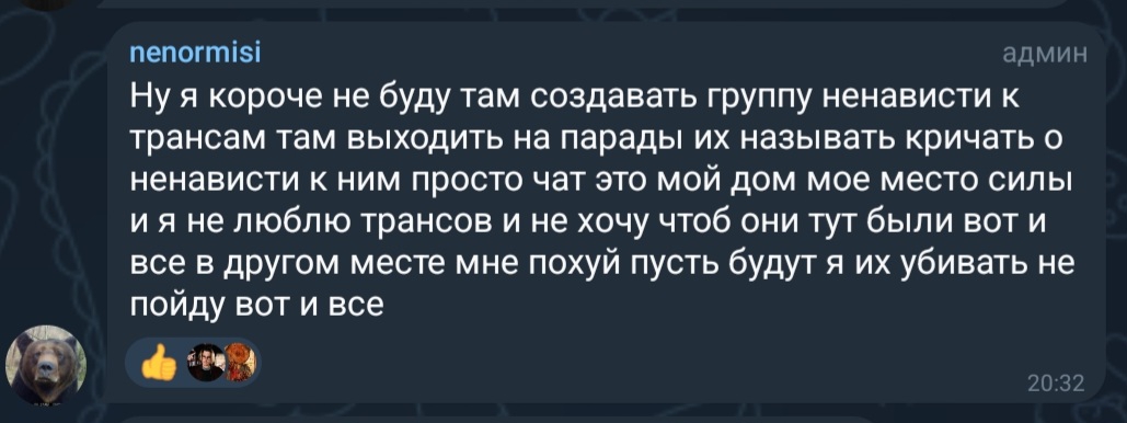 >>26234333 А ватник и транс как-то нивелируют друг друга? Эти два понятия. Совершаешь преступление, а потом говоришь что уважаешь действующую власть и патриот. И всё, ты свободен.
