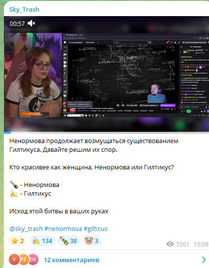 селючка уже не знает к кому бы припиявиться, из-за её гнилого характера с ней никто из нормальных не хочет коллаборировать, только убогие и треш стримеры казалось бы раньше были всякие стримеры из среднего твича, но теперь даже низы морозятся и она ищет хоть какое-то говно хахаха
