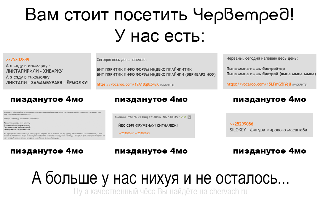 Но щитпостер и вредитель не может считаться черваном. Так что не вам судить о легитимности, любители вот такой невообразимой хуиты: >>26249500