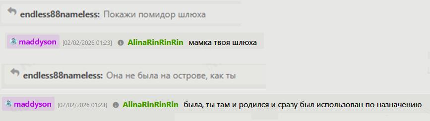Скуфыч, спок. Цирк исполняется у нее на стримах и тебеподобными в треде. 🤡
