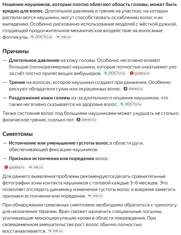 Сейчас узнал, что компьютерные наушники (такие здоровые, накладные) могут вызывать облысение. А я в них часами сидел каждый день на протяжении многих лет, ёба-боба...