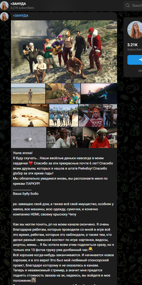 Даже интересно теперь, есть ли у нее хоть какое-то желание стримить вне походов на работу в это самое гтарп. Всегда козалось, что она вообще из стримов целиком в Ягоду уйдет, когда это случится