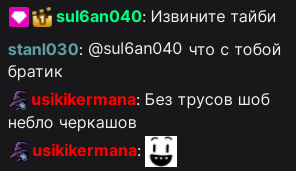 выводы? интернет общение это шум, хотя у некоторых получилось сблизиться, за 3 года я не встретил ирл ни улю, ни валю, никого, я в принципе ещё ниразу не появлялся в кадре твич-стримов никогда, даже не созвонах арчидоса, хотя они обе звали встр ирл, по большей части я сам отказывался и сливался, да и не напрашивался никогда, я знаю что стримеры не любят встречи с папищеками, это как издержки профессии. уля звала встр в мск и валя звала в ереван, обе по своей инициативе, но т.к. меня не устраивали условия. капать толчок ненормовой в деревне Моторкино на краю света? нет спс. спонсировать поездку вали в Ереване, отели, рестики, при этом в ЛС отвечает с задержкой 2 недели? нет спс. я знаю себе цену. для встречи не нужны условия и подарки. тем более когда видишь как валя тусит с нефарятами в "Бланке" с блоха сквадом или загородом на вписке, где ей целуют ручку, а модера даню просит держать расстояние 1 метр когда рядом сидит. чувствуешь что тебя где-то наёбывают... поэтому лучше дома сидеть, чем бегать за стримершой, у которой даже вышки нет.