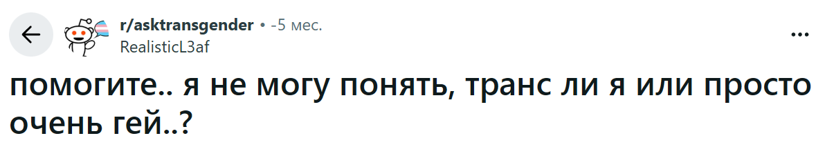 Ты ЭТО пишешь в треде мужика в платье с пришитыми сиськами, который создал приваточный загон и требует называть его настоящей женщиной. Бревна в глазу кто-то упорно не замечает. Я, кстати, ни от кого не требую называть себя небинарным боевым вертолётом Апач и таковым себя не считаю.