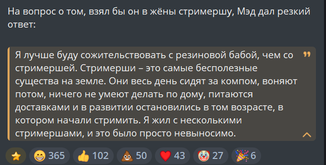 Напомню вам, через 3 дня после этого момента Эвелон будет полностью игнорить ее, как будто ему максимально похуй на нее) чисто чтобы не забывали, кто главный биполярщик на твиче. По нему вообще анализ нельзя делать