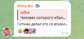 Про Гитмана она без всякой постиронии писала. То есть хотя бы в другом чате уже не пытается делать вид что все никакого Гитмана никогда не существовало. Во всяком случае мне так покзалось.