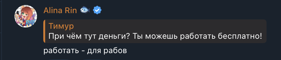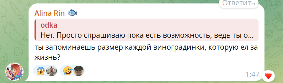 Я пришел со смены? Че тут происходит? Трусевич спустилась в инцелятник и своей мощной овуляционной энергией давит кисянов в тг у жопича? Покидайте самые важные ее ответы в виде скринов пж.