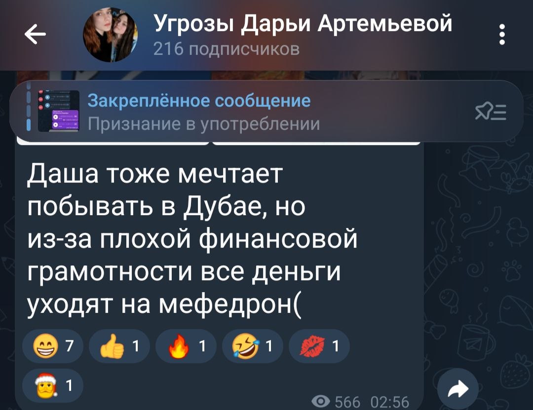 Интересно, а как Аринка себя чувствует после того, как Дарья спустя месяц от этого поста поехала в Дубай, а у нашей рыжей замухрышки до сих пор не появились деньги даже на купе? Советую кстати ознакомиться с этим ее каналом всем, кто не верит, что тут сидит и срет она. Женщина собрала столько компромата на себя, что я на месте Дарьи уже давно пошел писать заявление по нескольким статьям УК РФ и подавать иск на защиту чести и достоинства. Павлова явно не прошарена за российское право и выкладывая такое даже не думает о последствиях, надеясь что кто-то в суде будет слушать ее верещание про «да она правда наркоманка, у меня есть скриншот ее сообщения написанного Ивану Иванову 2 года назад»